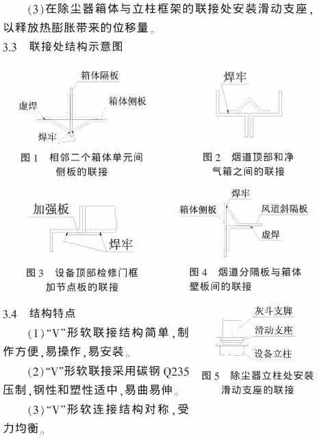 由于熱膨脹的原因,在設(shè)備箱體與立柱框架的聯(lián)接片產(chǎn)生較大的位移量,造成除塵器立柱歪曲,從而產(chǎn)生偏心力矩,埋下了事故隱患,嚴(yán)重者可使設(shè)備倒塌。