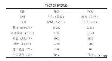 換熱器選用管殼立式換熱器1套,TS管殼式換熱器,總傳熱面積(以管中心徑計(jì)):110m2。參數(shù)如下表。