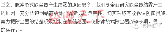 脈沖布袋除塵器結(jié)露現(xiàn)象原因分析及解決辦法