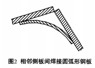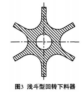 (1)內(nèi)部不能有煤粉堆積。灰斗等斗壁與水平面夾角不能小于70°,灰斗相鄰側(cè)板間(即灰斗棱內(nèi)側(cè))應(yīng)焊接半徑大于100 mm的圓弧形鋼板(見圖2);灰斗外壁可設(shè)置振動(dòng)器進(jìn)行定期振動(dòng),以防止灰斗內(nèi)煤粉起拱棚料;灰斗下口要足夠大,以保證收集下來(lái)的粉塵灰能順暢下泄;內(nèi)部板材所有加強(qiáng)筋均應(yīng)該設(shè)置防積灰板,防積灰板與水平面傾斜角度也不能小于70°;采用淺斗型回轉(zhuǎn)下料器(見圖3),既能防止煤粉粘接又能有效泄灰、鎖風(fēng)和防止結(jié)露,下料器要設(shè)有速度感應(yīng)器,將下料器的運(yùn)行情況傳送到中控室,以便及時(shí)了解下料器的運(yùn)行情況。