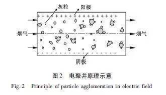 電聚并是各聚并技術(shù)中好實(shí)用有效的方法。電聚并是通過細(xì)顆粒荷電,促使細(xì)顆粒相互吸引、碰撞、聚并,使細(xì)顆粒團(tuán)聚成大顆粒。電聚并的效果取決于粒子的濃度、粒徑、電荷的分布以及外電場的強(qiáng)弱(圖2)。