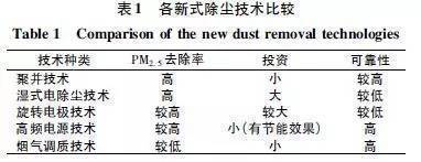 各新式除塵技術(shù)比較見表1。