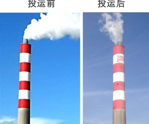 圖5國電北侖電廠#7機組WESP投運前、后煙囪排放對比圖
