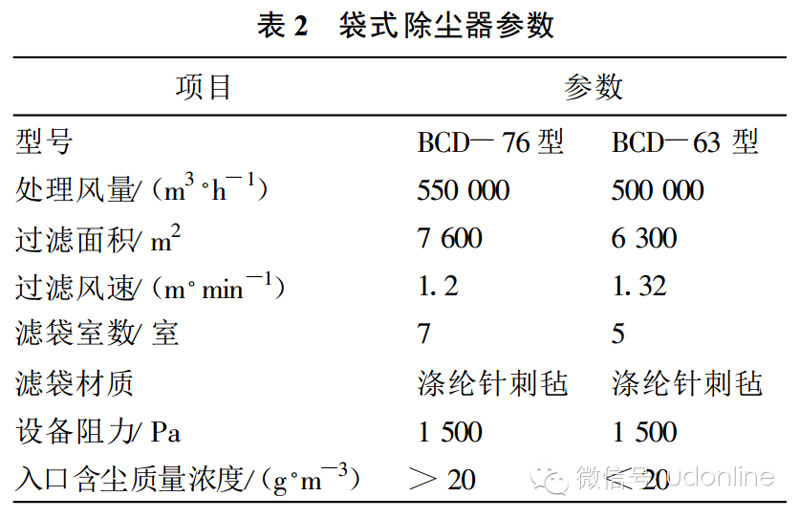 袋式除塵器參數(shù)見表 2 。